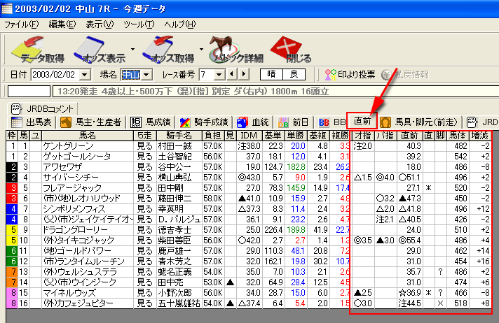 見えない場合は、まだ直前情報データが更新されてない場合があります。